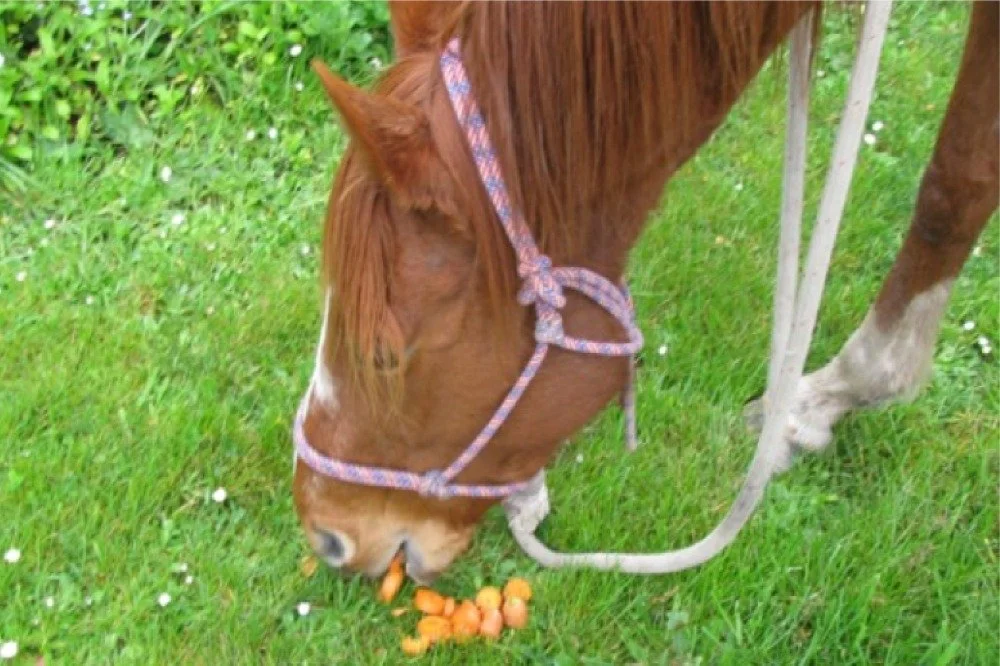 Another aspect of the training is to use an alternative reward that your horse values. This could be a scratch on his favourite itchy spot. It could be a short period of no-pressure downtime. It could be that you offer 30 seconds of grazing (note that I said “you offer” - not “your horse takes”). Use your imagination and understanding of what your horse values.