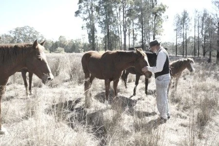 Me with some of our horses. Not a lot of bullying or conflict going on here.
